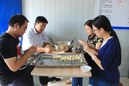 宽敞明亮的员工食堂里摆放着一排排崭新的暖色调餐桌椅,一进门就能见到墙面上张贴的勤俭节约的大标语,还特别预留了排队区域,这些小小的举措,都营造了一个轻松文明的就餐环境。工作中,伙委会利用项目部QQ群、微信群、意见箱等充分听取员工意见,严格按伙食标准精打细算,在最大限度内确保品种多样化,以照顾到大多数人的胃口。除了味道可口、价格实惠的饭菜,项目食堂还提供24小时的热水供应,高温时节还提供绿豆汤等消暑饮品。考虑到员工主要来自南方,项目部在挑选厨师时还尤其注重其徽菜及川菜等手艺。平时,针对员工口味,项目部努力调剂食品花样,丰富饭菜品种,做到营养搭配、荤素搭配,每周供应辣子鸡、酸菜鱼、炒饼、炖牛肉、饺子、包子等基本不重样,众口也不再难调。此外,针对节日需求及部分员工的特殊需求,项目部食堂还专门准备了节日聚餐、员工生日面、病号餐等,让员工切实感受到了项目部的贴心与关爱。