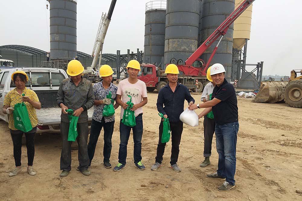 建筑公司为节日大干农民工送月饼