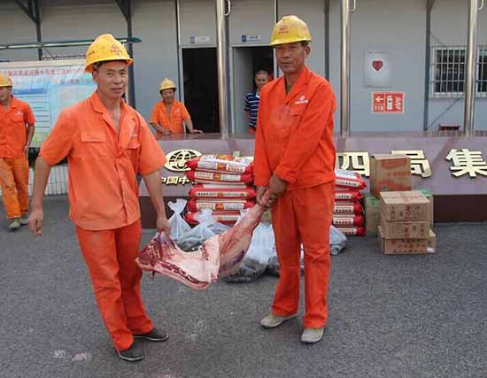 建筑公司为节日大干农民工送月饼