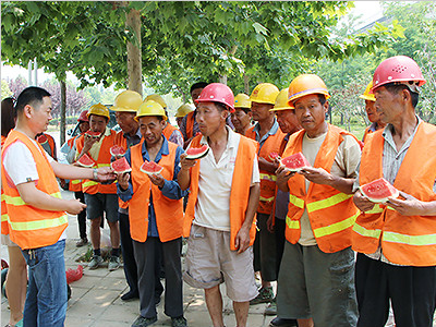 建筑公司为节日大干农民工送月饼